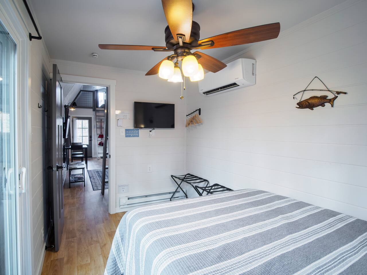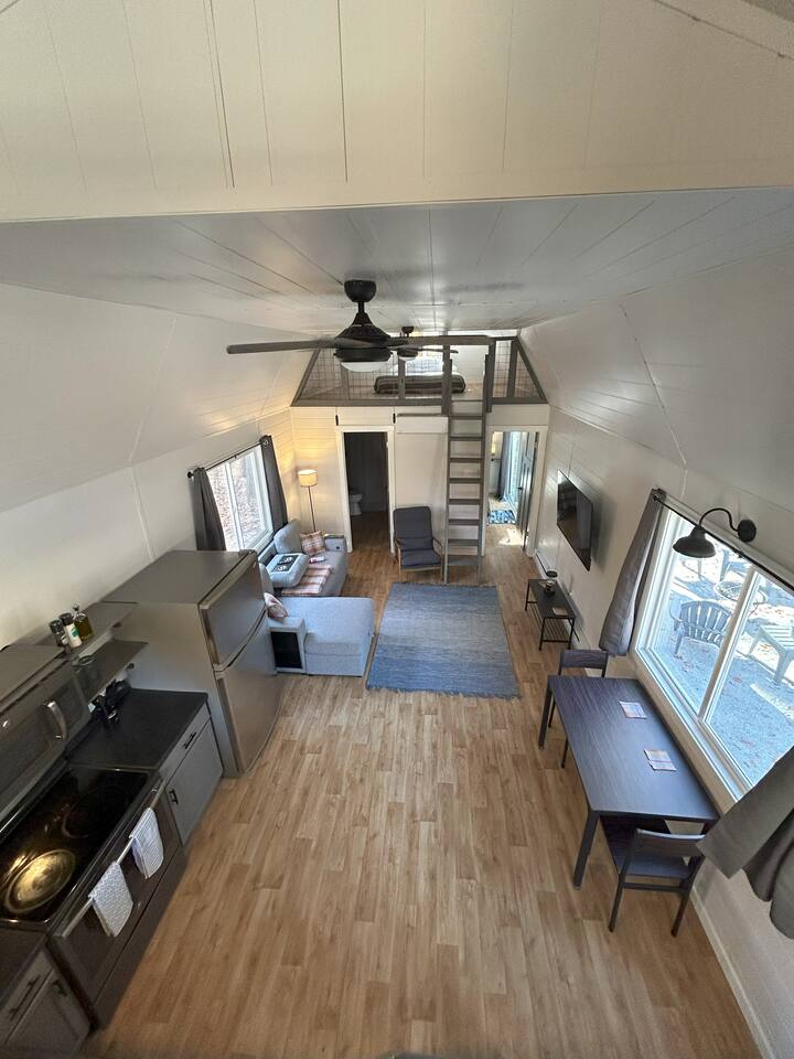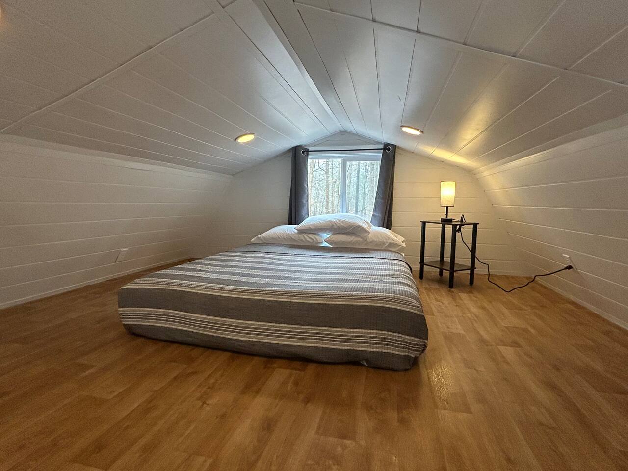 Guests have exclusive access to the entire Cozy Lofted Cabin and its designated outdoor recreation area located on the west side of the cabin. Dedicated parking spaces are available in front of the cabin, with a large gravel area to accommodate extra vehicles, trailers, boats, etc. Shared spaces on the property include lawn areas near the driveway and behind the cabin, as well as wooded areas for exploration.